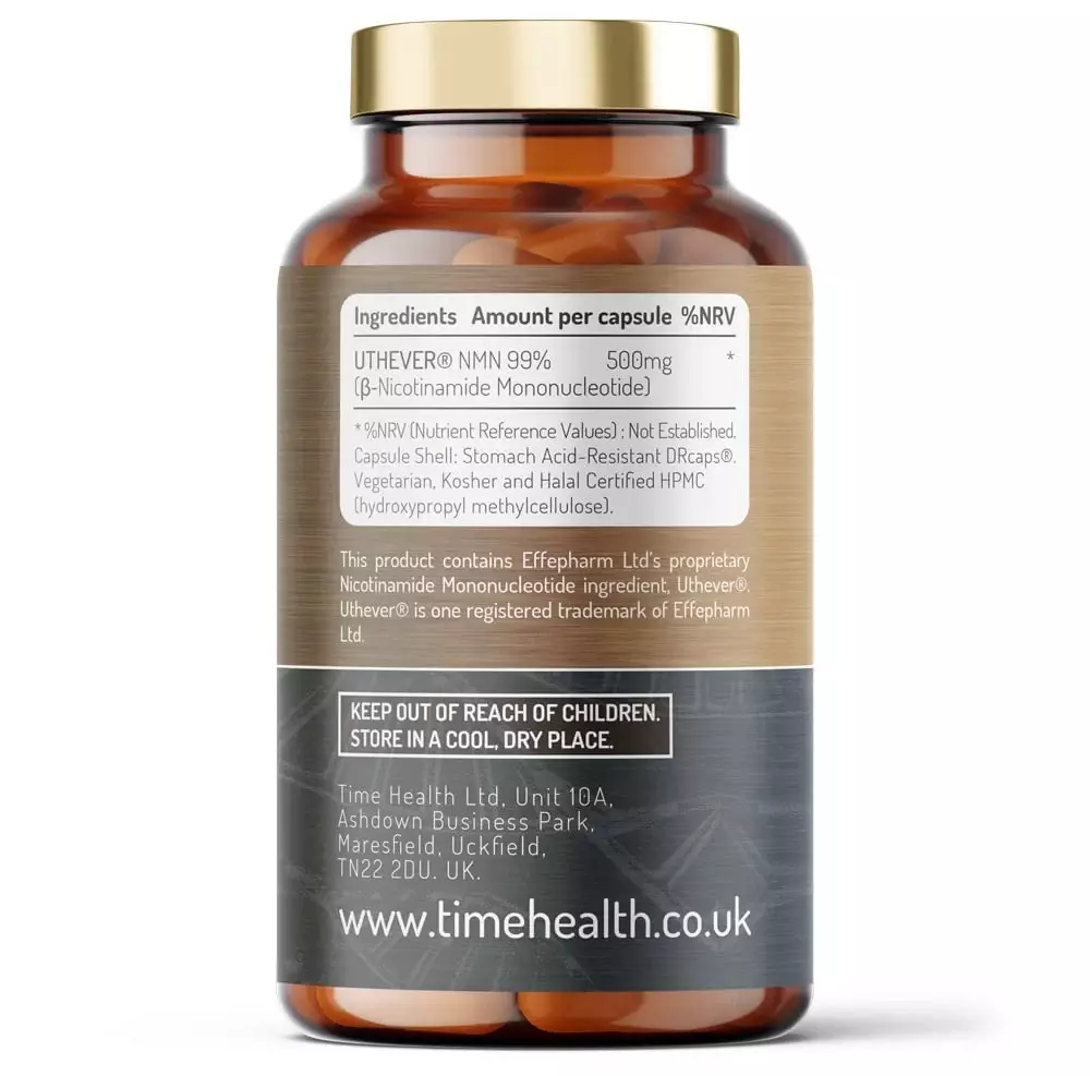 Innhold per kapsel: 500mg UTHEVER® NMN (Nikotinamid Mononukleotid) - 99% renhet.
