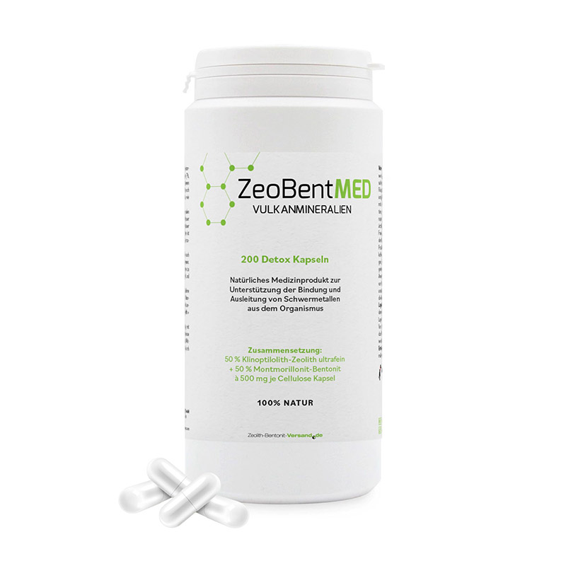 Det ultrafine zeolitt og bentonitt er blandet i produktet ZeoBent MED® avgiftende ultrafint pulver. Kvalitetstestet og CE-sertifisert medisinsk utstyr for intern bruk. ZeoBent MED® avgiftende ultra-fint pulver, «multitalent» og kraftig avgiftende middel. Blandingen består av 50% ultra-fine clinoptilolitt zeolitt med en gjennomsnittlig kornstørrelse på ca. 7 mikrometer og 50% montmorillonitt bentonitt med ca. 16 mikrometer uten andre tilsetningsstoffer av noe slag. Zeolitt og bentonitt utfyller hverandre og gir en synergisk god effekt.